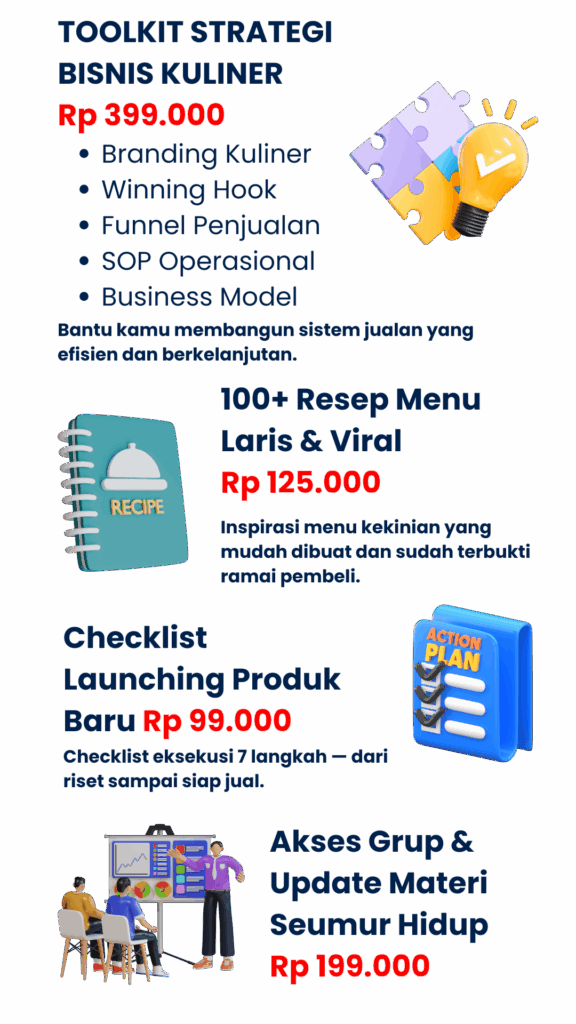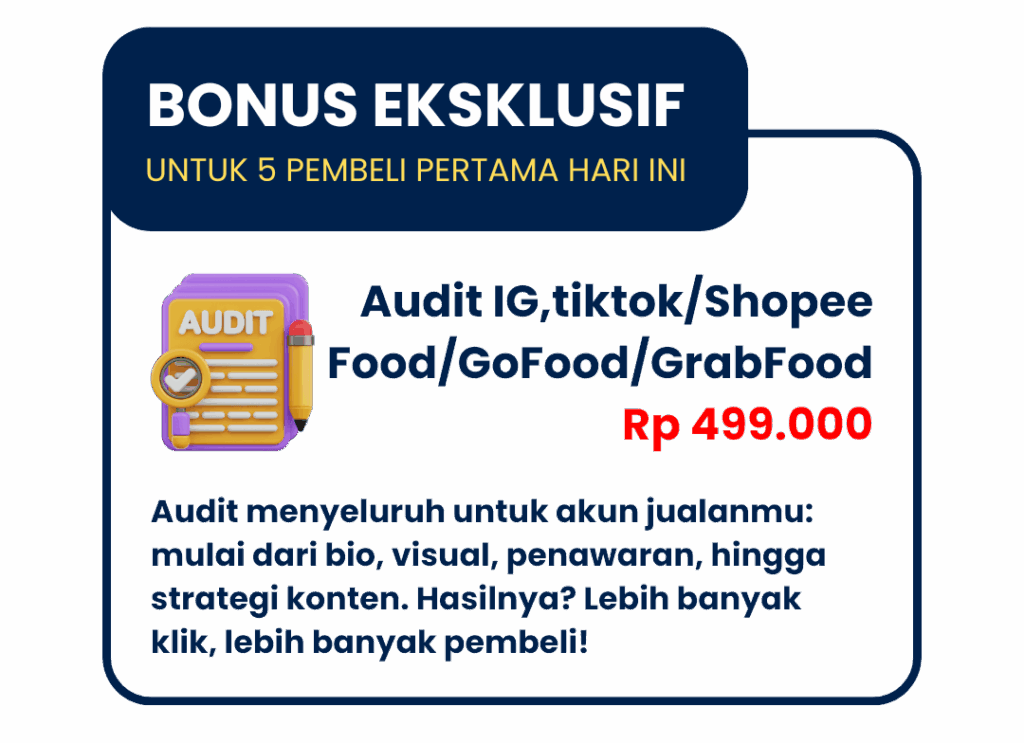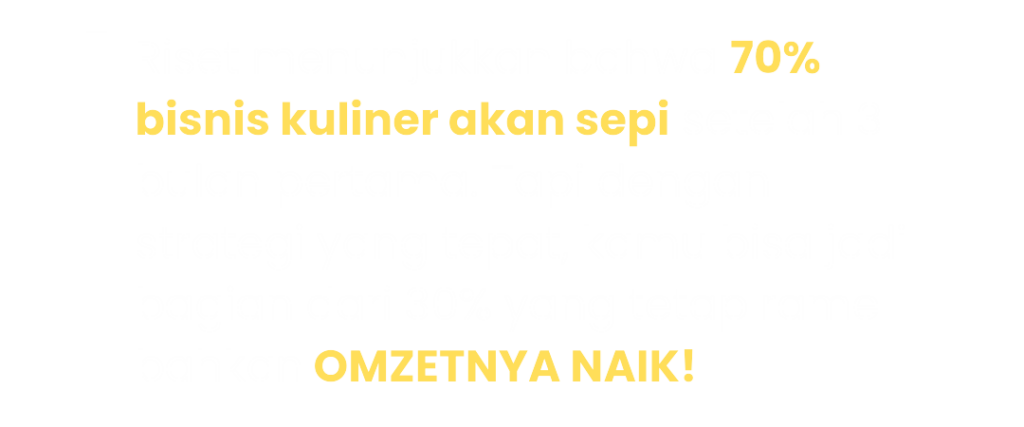 Cukup ikuti strategi yang sudah TERBUKTI bantu banyak bisnis kuliner pecah telur dalam hitungan hari.