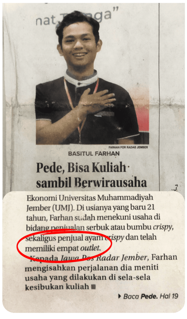 Saya Basitul Farhan, pelaku bisnis kuliner sejak 2019. Saya mulai jualan sendiri saat masih kuliah, dan promosi online jadi senjata utama saya.